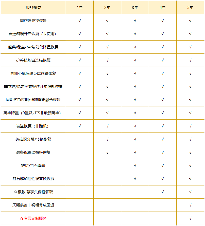 误操作恢复为尊贵会员的特色服务,将最大限度降低会员因误操作造成的虚拟资产损失。届时请先咨询客服。